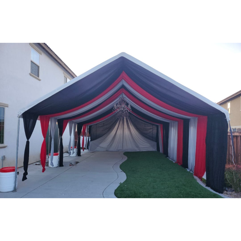 The 20×30 Tent with Draping is perfect for medium-sized events that require a premium and elegant touch. Ideal for weddings, anniversaries, and formal celebrations.